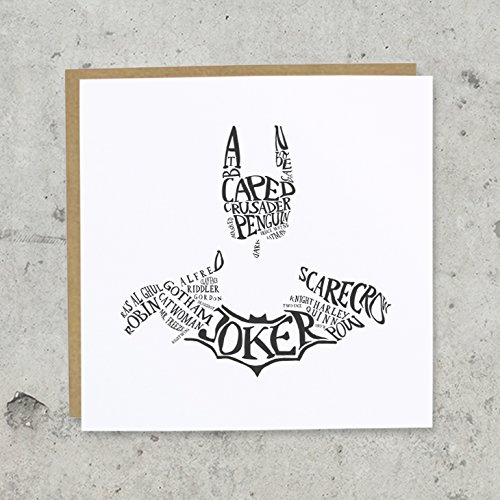 Biglietto di auguri con scritta Batman, scritta in lingua inglese “Joker, Scarecrow” (lingua italiana non garantita)
