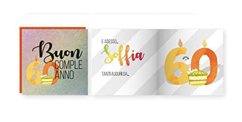 Biglietto Auguri Apri e Soffia con Busta Compleanno 60 Anni Luci e Suoni 15x15cm