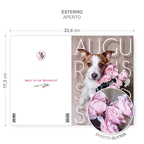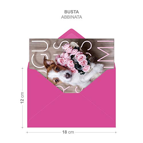 Biglietto COMPLEANNO auguri | busta regalo abbinata | dimensioni 18 x 12 | fatto a mano e Made in Italy (CANE ROSY)