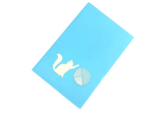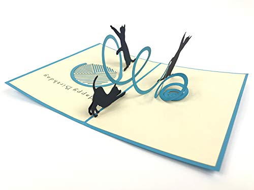 Biglietto di compleanno: 3D Cards Happy Cats che giocano con filato 3D pop-up biglietto di auguri, Kirigami Paper Craft Cartoline