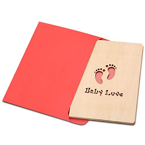 【Design unico】Il biglietto di auguri in legno del nipote utilizza la tecnologia di taglio per incidere impronte di colore rosso vivo e le parole "Baby Love" per garantire che ogni dettaglio vuoto sia perfetto e unico.