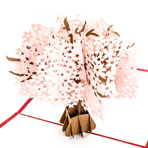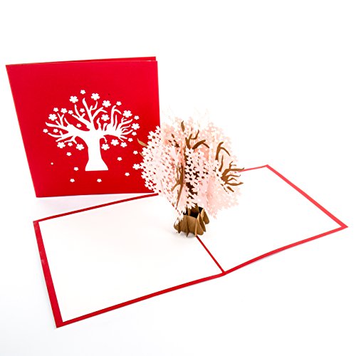 Biglietto pop-up "Fiori di ciliegio, colombe su albero di ciliegio, 3D, biglietto di auguri per matrimonio e fidanzamento, come biglietto di invito e biglietto di San Valentino