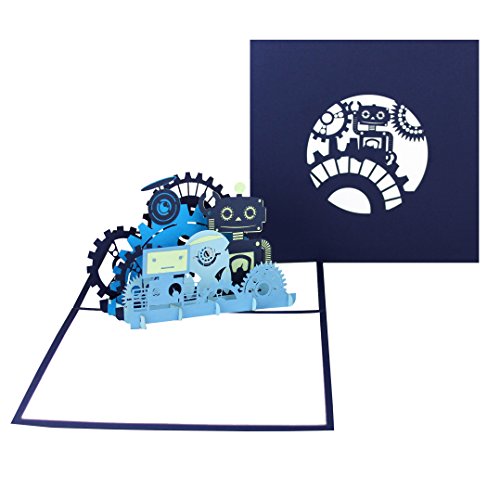 Biglietto pop-up "Funny Robots" - Divertente robot 3D come biglietto di compleanno, buono, invito, come buono regalo o regalo per compleanno per bambini e inizio della scuola.