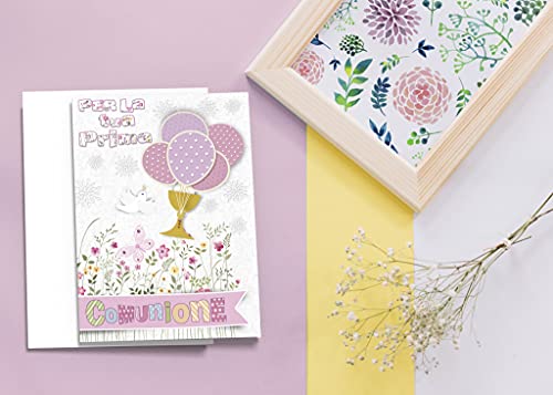 Biglietto "Prima Comunione" - Stampa Offset (Palloncini Rosa)