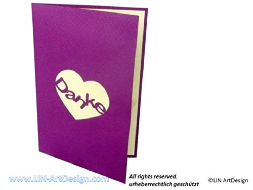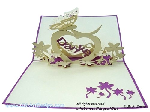 Biglietto tridimensionale pop-up, scheda biglietto di ringraziamento con farfalla & cuore grato (lilla) (# 31)