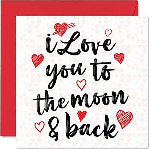 Biglietto di San Valentino Lei Lui - I Love You To The Moon & Back - Simpatico biglietto di San Valentino fidanzata, moglie, marito, partner, 145 mm x 145 mm romantico anniversario fidanzata