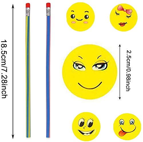 Le matite flessuose elastiche e le gomme da emoji sono meravigliose per il compleanno, goodie bags, box di ricompensa e premio di classe, capodanno, collezione commemorativa, promozione, festival, Natale, nuovo semestre, giveaway, premi del gioco, premi scolastici, ufficio, ringraziamento, festa in giardino, ornamenti per la festa, ecc.