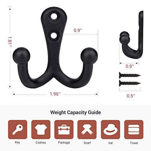 BIGLUFU Nero Ganci Appendiabiti da Parete, 6 Pezzi Ganci Appendiabiti Doppi in Metallo, Ganci da Parete con 12 Viti per Sciarpa, Borsa, Asciugamano, Cappello