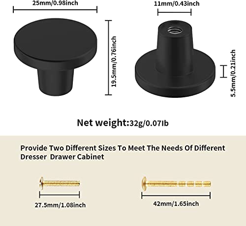 BIGLUFU Manopole per cassetti da 25 mm, colore nero, per armadietti da cucina, per cassettiera, cassetti, maniglie per cassettiere (nero, confezione da 12)