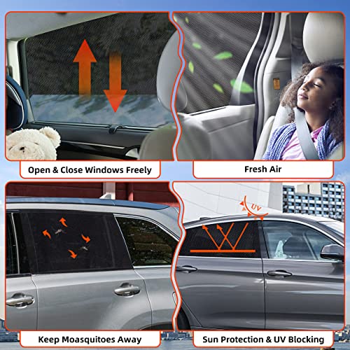 [Apri la Finestra per l'aria Fresca] Tendina Parasole Auto Realizzato in tessuto di nylon a doppio strato di alta qualità, traspirante ed elastico. Solleva e abbassa liberamente i finestrini. Mantenere la circolazione dell'aria dell'auto e rimanere di buon umore.