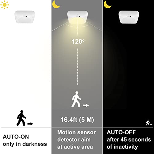 [Interruttore ON/OFF del sensore di movimento] - È possibile impostare la luce dell'armadio in modalità movimento o in modalità normale premendo i pulsanti ON/OFF del sensore di movimento sul telecomando. E si accenderà automaticamente quando viene rilevato un movimento entro 16 piedi, si spegnerà automaticamente dopo 45 secondi se non viene rilevato alcun movimento.