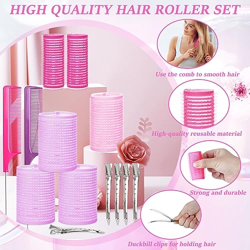Bigodini Grandi 36 Pezzi, Bigodino Autoadesivi con 10 Clip e 2 Pettini, Bigodini Senza Calore Grandi Ricci Bigodini per Capelli Lunghi e Corti(25/36/44 mm, 12 Pezzi per Misura)