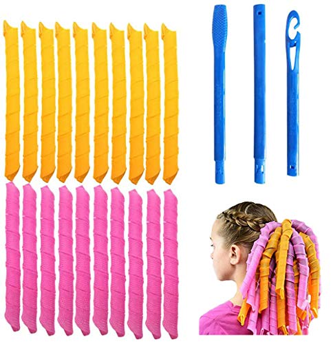 Bigodini magici a spirale, 55 cm, confezione da 20 bigodini per capelli senza calore, bigodini in plastica con 1 ganci per acconciatura, per capelli extra lunghi fino a 55,9 cm.