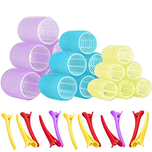 【Set di Rulli per Capelli Self Grip】set di rulli per capelli contiene 30 pezzi di strumenti per parrucchieri in totale, tra cui 18 pezzi di capelli bigodini autoadesivi in 3 colori e dimensioni, 12 pezzi di clip a becco d'anatra (colore casuale), che possono soddisfare i tuoi vari scopi di arricciatura. Adatto per ragazze, donne, bambini e adulti.