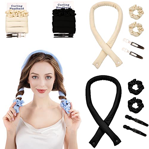Bigodino Lungo per Boccoli, Velluto Confortevole e Antiscivolo, Boccoli Capelli Senza Calore Set di Acconciature Fai da te per Dormire Durante La Notte - Beige & Nero
