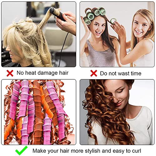 Kit bigodini senza calore: il set include 18 bigodini (9 pezzi ciascuno per 15 cm e 25 cm) e 1 gancio per acconciatura. Quantità sufficiente e strumenti pratici ti aiutano a creare ricci belli e naturali facilmente e rapidamente