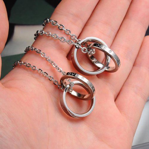 Bigsoho Fashion in acciaio INOX, a 2 anelli, non miscelati» Modifiche a forma di cuore, con zirconia cubica, motivo: "" eternal love ", da uomo/donna, con pendente a forma di sposi e Collana da donna con pendente, cod. NGX-879-W