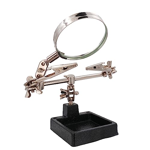 BIGtec Terza mano con lente d'ingrandimento per aiutare la mano meccanica di precisione, accessorio per saldatura con morsetti a coccodrillo sostituibili