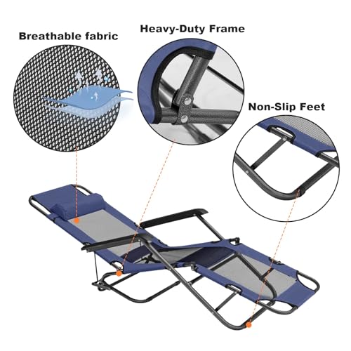 BIGTREE Lettino prendisole da campeggio, pieghevole, con schienale regolabile, da spiaggia, da giardino, per balcone, esterno (blu scuro)