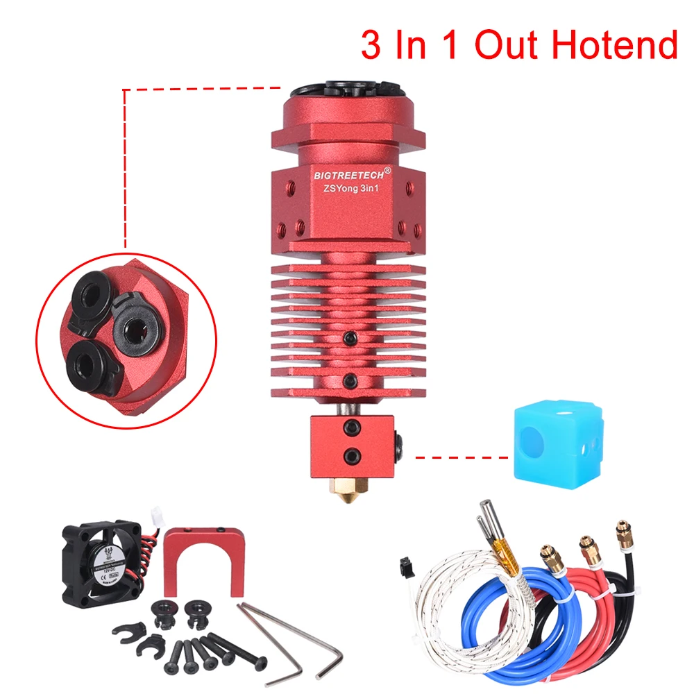 BIGTREETECH 3 In 1 Out Hotend Bowden Extruder 3D Printer Parts Three Colors Switching Multi-color 12/24V J-head Filament Nozzle