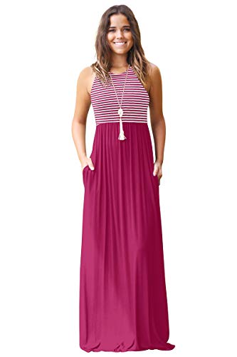 BiilyLi Donna Abiti Lunghi Estivi Senza Maniche Beach Abito A Righe Sera Partito Lungo Maxi Elegante Vestito S-4XL (XXL, Fucsia)