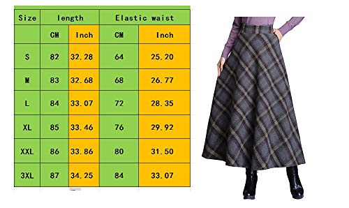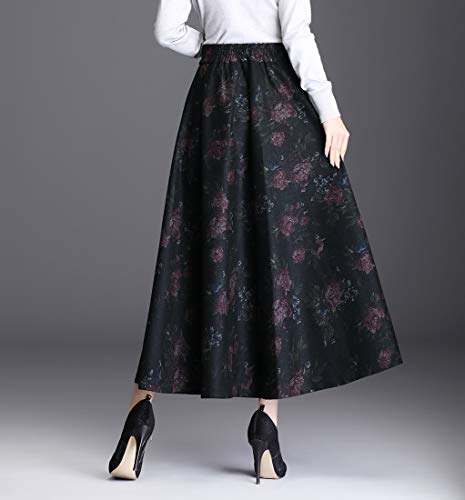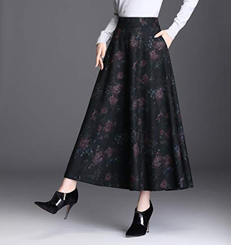 BiilyLi Donna Vintage Elegante Lana Lunga Gonna Stampata Vita Alta Inverno Autunno Caldo Maxi Gonne Vita Elastica Gonna ombrelloombrello (XXL/Vita Elastica:80cm, Colore 1130)