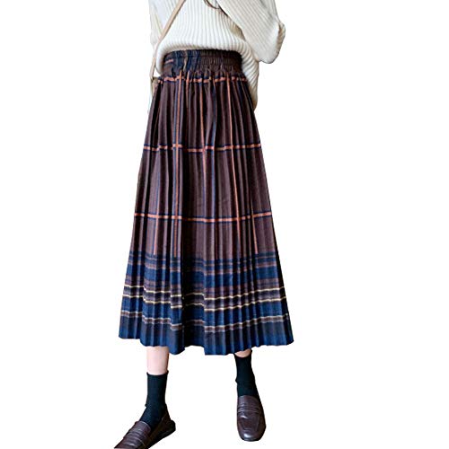 BiilyLi Gonne Lunga Invernale Donna Gonna Pieghe Scozzese Lana Caldo Elegante Vita Elastica Vintage Vita Alta Svasata Gonne 1-S