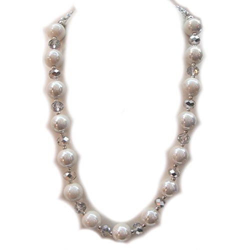 Bijotteria - Collana Girocollo in Alluminio, Porcellana Bianca e Cristalli
