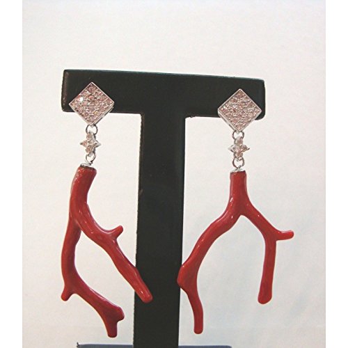 Bijotteria - Orecchini pendenti in gento 925% con corallo rosso e zirconi
