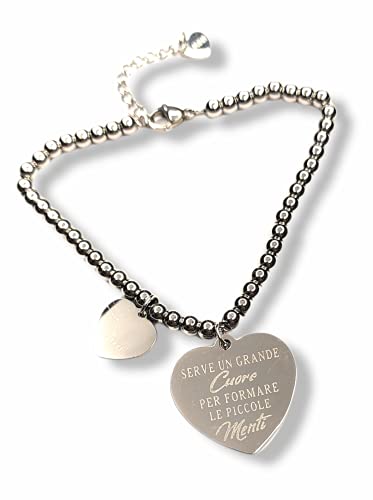 SiLò Bijoux Bracciale MAESTRA in Acciaio con Dedica Frase INCISA Inossidabile Anallergico Amore Dedica - con Confezione Regalo Inclusa (SERVE UN GRANDE CUORE PER FORMARE PICCOLE MENTI)