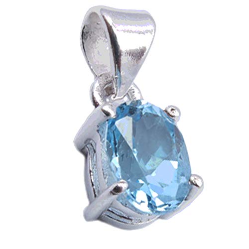Bijoux et Objets - Ciondolo con Topazio Azzurro in Argento 925 - Dimensioni della Pietra 6x8mm