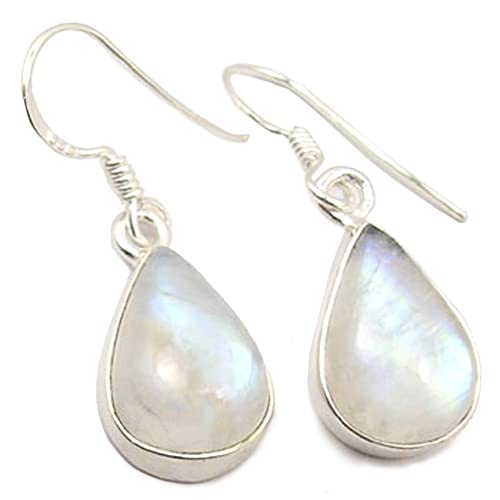 Bijoux et Objets - Orecchini pendenti con pietra di luna arcobaleno in argento 925 - Dimensioni delle pietre 10x14mm