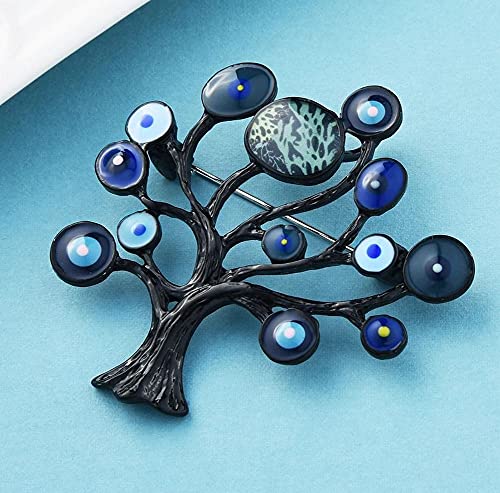 Bijouxmodefashion Spilla a forma di albero della vita nero e blu in acciaio.