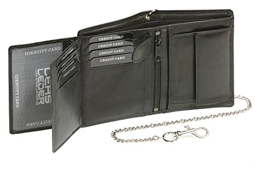 BIKER Portafoglio per Uomo e Donna con Catena Cromo Formato Verticale, Vera Pelle, Nero - ''LEAS Chain-Series''