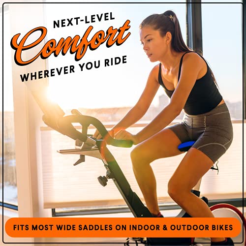 Bikeroo, sellino in gel per bicicletta, largo, morbido e imbottito, comodo sia per uomini che per donne, compatibile con biciclette e cyclette, per esercizi al chiuso e spinning, Blue