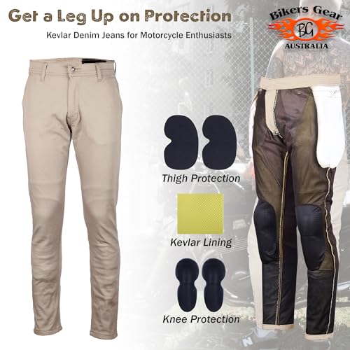 Bikers Gear Australia Kc0020-30r - Jeans da motociclista unisex in kevlar foderato in stile moderno, protezione CE, Tan Chino, 30 UK