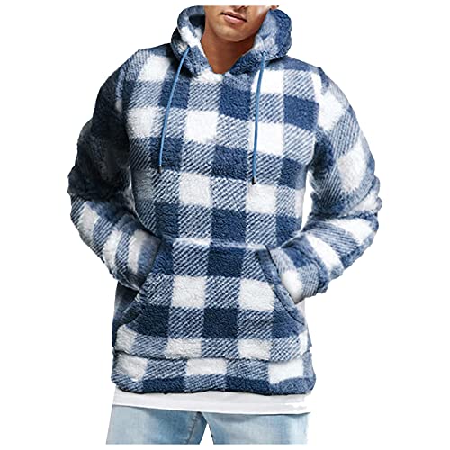 BIKETAFUWY Giacca da uomo in pile oversize con cappuccio, felpa con cappuccio, felpa con coulisse, in peluche, calda e spessa, con cappuccio, 04# blu, XL