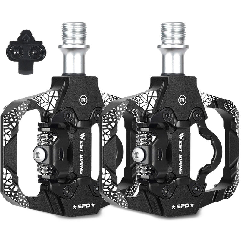 Caratteristiche: Doppia funzione: pedali per bicicletta a doppia faccia, un lato è un tradizionale pedale piatto, adatto per scarpe normali e l'altro lato è un pedale passo-passo SPD, adatto per scarpe da ciclismo SPD. Cuscinetto sigillato: i cuscinetti sigillati con boccola DU possono garantire la stabilità e l'affidabilità del pedale, proteggendo il mandrino da acqua e polvere, garantendo una buona durata e prestazioni. Qualità affidabile e ampia piattaforma: il pedale è realizzato in lega di alluminio, robusta e resistente all'usura, non facile da arrugginire. L'ampia superficie del pedale sostiene i tuoi piedi in modo più uniforme, offrendo un'esperienza di guida più piacevole. Design antiscivolo: la piattaforma piatta del pedale è dotata di chiodi antiscivolo in acciaio inossidabile, che hanno un forte potere di presa e la superficie rotonda dell'unghia non danneggerà le scarpe, antiscivolo e può essere rimossa e sostituita dopo indossare. Ampia applicazione: pedali leggeri e