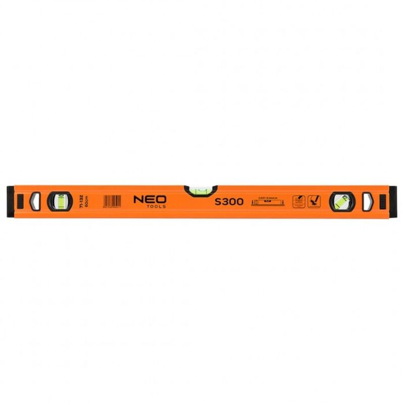 DATI TECNICI: Dimensioni lorde (larghezza x altezza x lunghezza): 5,10 x 2,00 x 60,00 cm Peso: 0,29 kg Marchio: NEO TOOLSPKWiU: 26.51.66.0 Lunghezza totale del prodotto: 60 mm Peso netto: 276 g Precisione: ± 0,5 mm/ m Angolo di livello: 45°, verticale, orizzontale Numero di livelli: 3 pezzi Estremità in gomma: Sì Spessore del profilo: 1 mm Numero di pezzi nel set: 1 pezzo Materiale del prodotto: alluminio Larghezza totale del prodotto: 21 mm Altezza totale del prodotto: 51 mm Livella in alluminio S 300, 3 livelli, 60 cm 71-132 della NEO è un dispositivo di misurazione di alta qualità con tre livelli di tubo integrati (45, 90 e 180 gradi) che utilizza la gravità terrestre per determinare l'orizzontalità o la verticalità di aerei in costruzione. Il modello offerto ha dimensioni di 51,5x20,5x600 mm. Ha uno spessore del profilo di 1 mm e una densità di 0,395 kg/m. La precisione della livella è 0,029° = 0,5 mm/m. Lo strumento è realizzato in alluminio. La struttura è dotata di 2 tappi