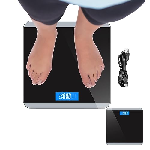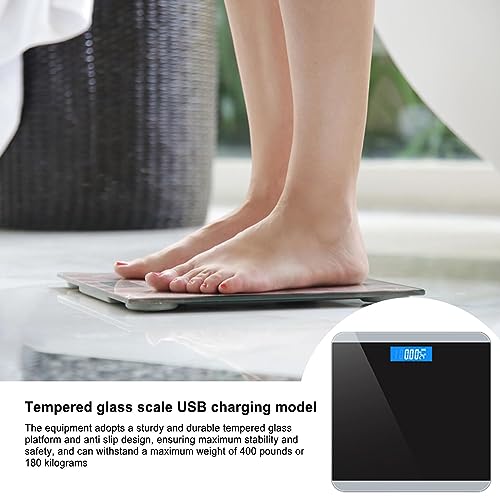 Bilancia da bagno | Display retroilluminato a LED digitale in vetro temperato Scala accurata,Bilancia pesapersone ricaricabile USB, capacità extra elevata di 400 libbre / 180 kg Phasz
