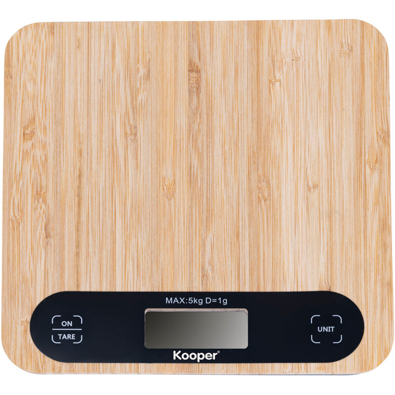 Bilancia da cucina digitale in bamb 205x205x275 cm Kooper Perch scegliere i complementi in bamb I complementi in bamb sono caratterizzati da un estrema leggerezza e resistenza allumidit agli urti e al calore Connotati da un design naturale e lineare si adattato ad ogni tipo di cucina Bilancia da cucina Kooper In bamb e Abs Spegnimento automatico 120 secondi Capacit 1g5Kg Precisione 1 g Funziona con 2 batterie AAA incluse Funzione tara Unit di misura gKglbozml acquaml latteoz acquaoz latte Indicatore batteria scarica Lo Indicatore carico massimo superato Err Misure l 205 p 205 x h 275 cm Colore legno naturale Pulire con un panno Colore Principale: | Materiale Principale