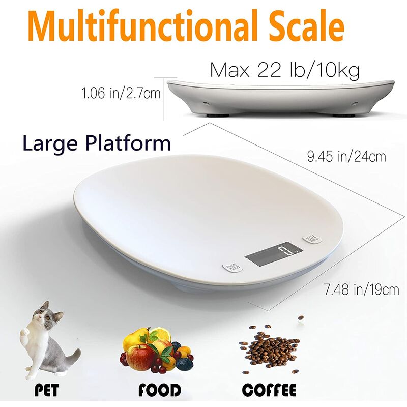 Peso preciso - La bilancia digitale per alimenti con quattro sensori di carico ad alta precisione integrati, incrementi rapidi e precisi di 0,1 once/1 g quando si aggiungono ingredienti, campo di misurazione: Da 0,1 once a 22 libbre (da 2 g/3 g a 10 kg). Tra il design e la qualità, questa bilancia da cucina durerà e funzionerà a un livello impeccabile. La tua cucina è appena diventata dieci volte più facile! Nota: Se si utilizza come bilancia per animali domestici, i piccoli animali non possono stare in piedi per pesare, si prega di mettere un piatto, le nostre bilance possono pesare fino a 22 libbre. 【Bilancia multifunzione】 piattaforma 9,5x7,5 pollici (24x19 cm) e Ampio display LCD per una facile lettura in g, oz,lb: oz e ml. Questa bilancia digitale è per una migliore cottura, cottura al forno, monitoraggio dell'assunzione, perdita di peso e affrancatura. Cosa si può volere di più 【Design pratico】 La bilancia per alimenti è progettata con una superficie bianca. Design moderno di