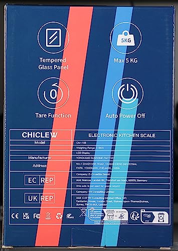 Bilancia Cucina Digitale, CHICLEW Bilancia Alimenti Professionale di Precisione a 1g con Display LCD Retroilluminato, Bilancia Elettronica Multifunzionale Funzione Tara, 10kg/22lb