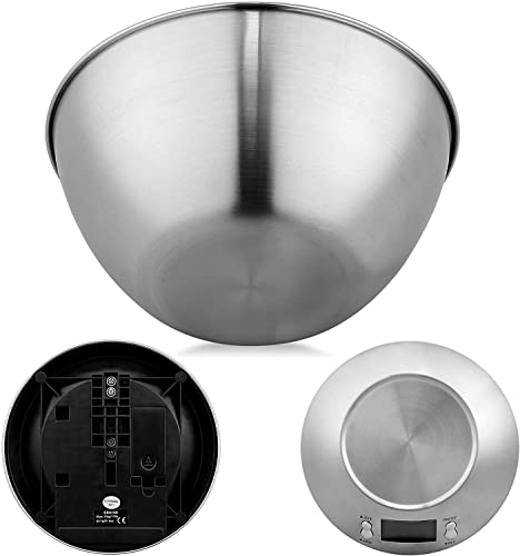 MATERIALE DI ALTA QUALITÀ: Bilancia da cucina elettronica digitale con ciotola elettronica è composta da una base e una ciotola, tutte due parti in acciaio inossidabile 304, la base installato con LCD pannello dello schermo impermeabile, anti-graffi, garantendo una lunga durata di vita. Potrete leggere i dati facilmente da tutti angoli su LCD cristallino, una ciotola media di modello carino e semplice che fa conveniente da pulire, uno strumento utile e ideale per la tua cucina.