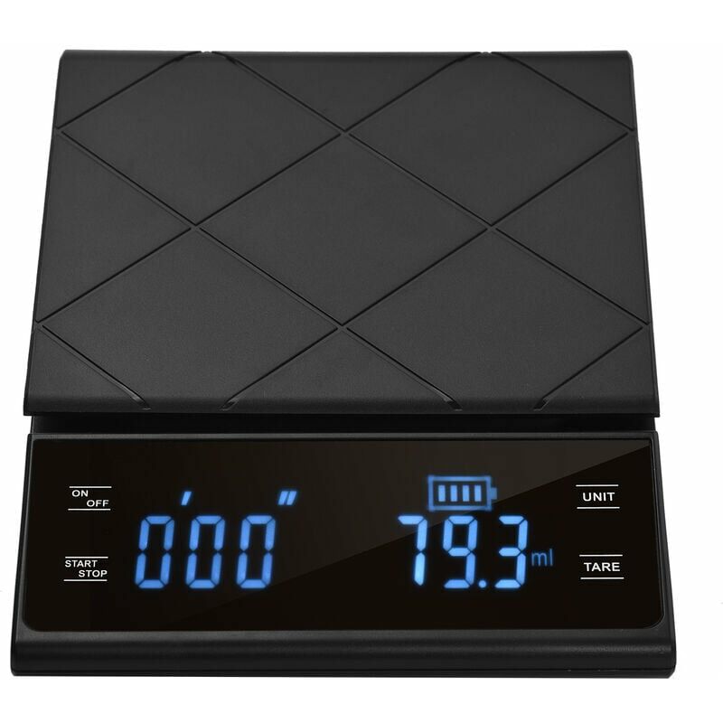 Questa bilancia da cucina è perfetta per cucinare e cuocere al forno. L'aspetto delicato ti farà senza dubbio amare la cucina. Questa bilancia multifunzionale ha funzioni di tara e spegnimento automatico e supporta anche la conversione di unità, facile e comoda da usare. Nota: Dimensioni e il colore potrebbe essere leggermente diverso a causa della misurazione manuale e delle diverse condizioni di illuminazione, si prega di prevalere in natura. Grazie. Specifiche: Tipo: Tipo 1 (alimentato da 3 batterie AAA)/Tipo 2 (batteria al litio integrata da 500 mAh) -- Opzionale Colore: nero Materiale: ABS Display: LED digitale < br />Capacità massima: 3 kg Capacità minima: 0,3 g Risoluzione: 0,1 g Unità: g/ oz/ ml< br/> Tempo massimo di conteggio: 99 minuti e 99 secondi Spegnimento automatico: circa 2 minuti Dimensioni del cuscinetto in silicone: 13 * 10,5 cm/5,12* 4,13 pollici< br /> Dimensioni articolo: 18 * 13 * 2,5 cm / 7,09 * 5,12 * 0,98 pollici Peso articolo: 260 g / 9,17 once