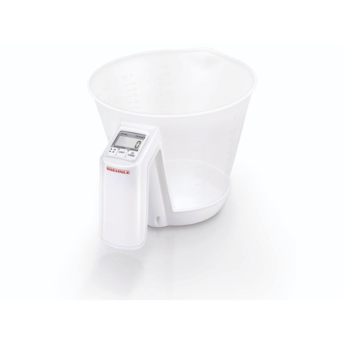 Pesa alimenti in grado di misura gli ingredienti liquidi e solidi: basta aggiungere e pesare uno dopo l'altro gli ingredienti come latte, olio, acqua e farina. Portata di 3 kg con ripartizione da 1 g. Grande ciotola per impasti da 1,5 litri e con 7 scale per una misurazione rapida. Ciotola per impasti rimovibile e lavabile in lavastoviglie - 3 anni di garanzia