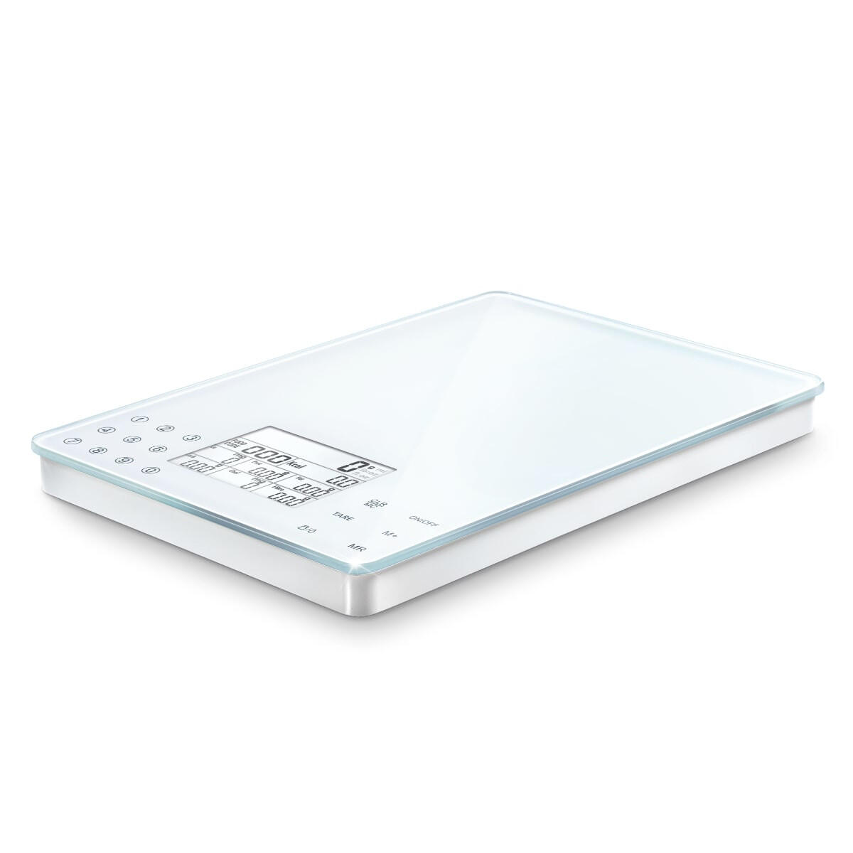Pesa alimenti con banca dati integrata contenente 950 alimenti comuni. Uso facile con codici numerici in corrispondenza degli alimenti 5 kg di portata con ripartizione precisa da 1 g Pratica funzione tara - 3 anni di garanzia