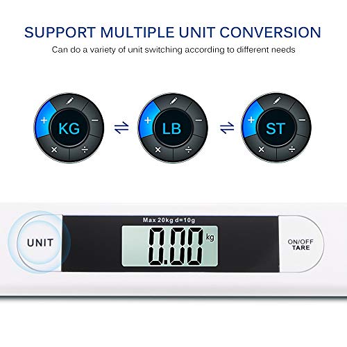 Bilancia digitale 20kg max Bilancia elettronica del bambino Misura peso KG/Lb/ST HD LCD Scala digitale per neonato neonato (colore bianco)