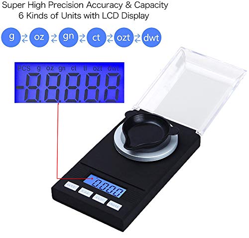 Bilancia digitale in milligrammi 50 g / 0,001 g, bilancia digitale per gioielli ad alta precisione, bilancia portatile per gioielli con display LCD, per farmaci in polvere, oro, gemme, ricarica