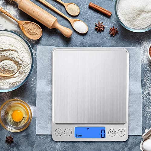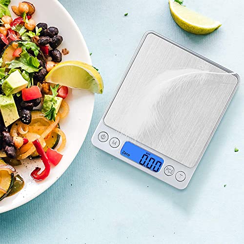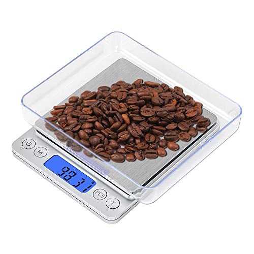 Ampia Applicazione: Le 0.01g bilancia digitale possono essere utilizzate per spezie, gioielli, tè, argento, oro, pesare verdure, frutta, ingredienti da forno, articoli per la casa di uso quotidiano e alimenti per animali domestici. La bilancia da cucina digitale dispone di doppi vassoi che possono essere sostituiti a seconda dei diversi oggetti.